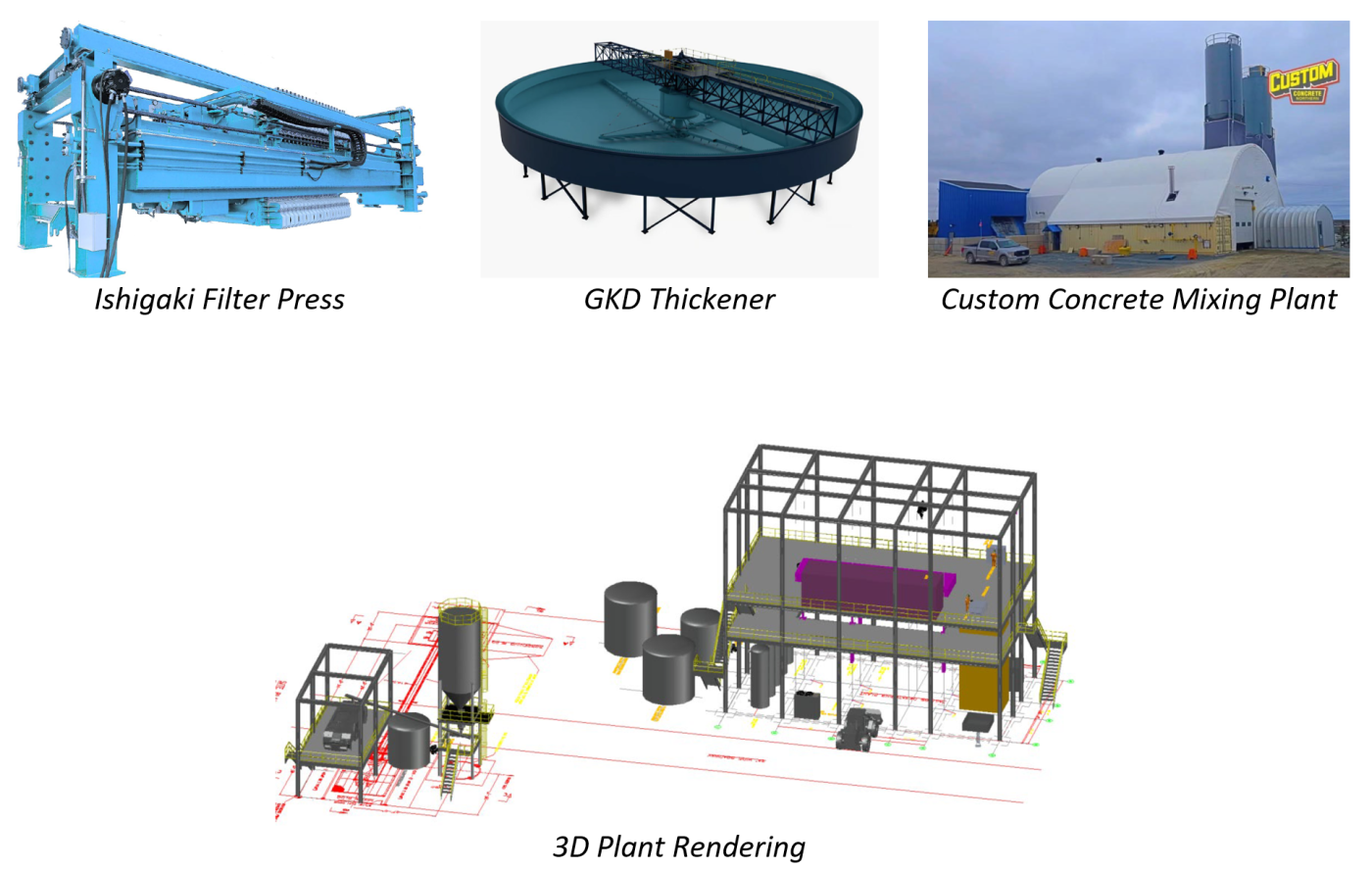 The plant will incorporate major equipment, including a thickener (GKD), filter press (Ishigaki), and mixing plant (Custom Concrete), all of which are currently in fabrication with deliveries scheduled to begin in June 2026. Site preparation commenced in February and is expected to be completed in April, followed by civil construction start-up in May, beginning with laying the filter press foundation.