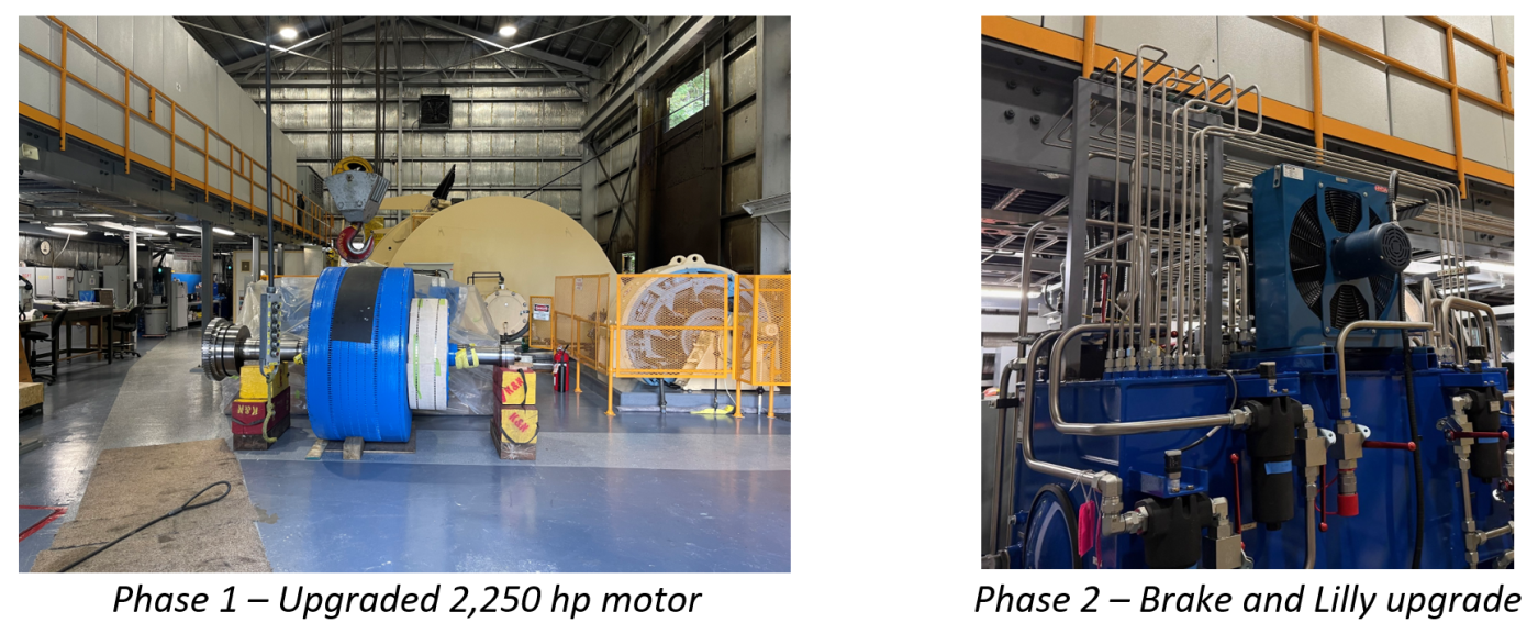 Figure 2: Galena No. 3 Shaft Phase 1 upgrade with new 2,250 hp hoist motor and; Phase 2 braking and Lilly control system upgrades