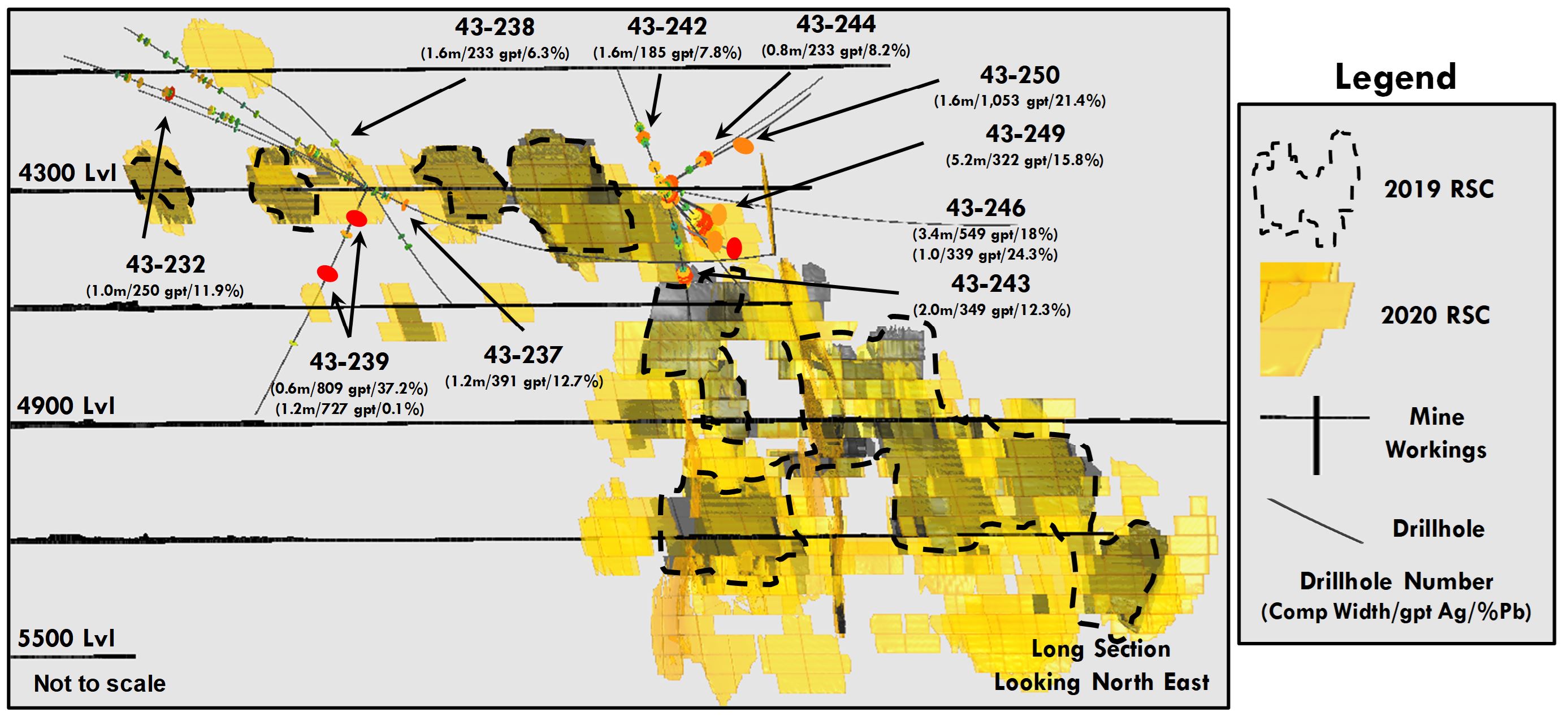 including 1,248 g/t silver and 32.4% lead (or 2,470 g/t AgEq) over 0.3 meters - 232 g/t silver and 11.8% lead (or 666 g/t AgEq) over 4.3 meters