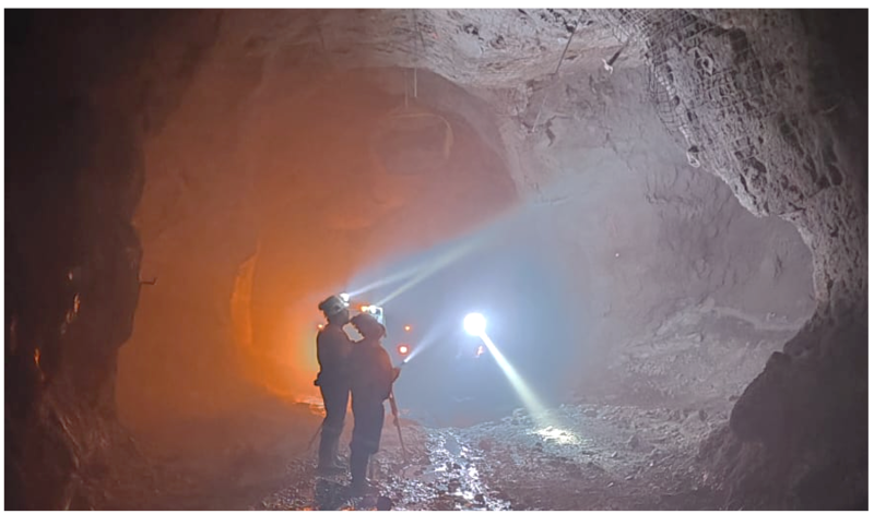 Figures 1 & 2: Roof bolting and inspection of work by Cosalá staff at EC120, following a record year for the operation.